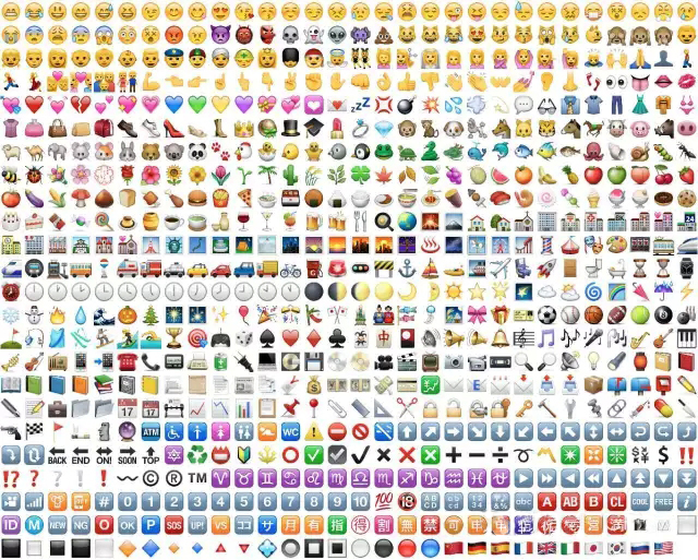 你知道吗,这种表情是有标准的噢,名为Unicode。为了避免设备的兼容性导致的跨终端显示表情符号的问题,以苹果和Google为首成立了Unicode委员会,以致力于发展和维护Unicode标准。最新的一版是2015年6月17日发表的Unicode第8版标准。以下是标准中的一小部分符号,你一定觉得很熟悉吧。