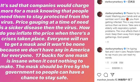 “现在美国没有足够的口罩提供给每个人。在人们最需要口罩的时候哄抬物价,这种行为简直比病毒还可怕。”3月9日,北控男篮教练马布里在社交平台上控诉,一只制造成本低廉的口罩要卖到17美元,这真的太疯狂了。