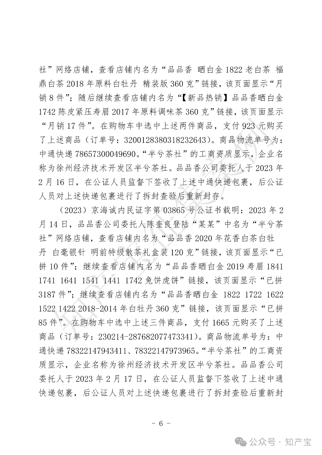 原告品品香品牌主营白茶产品,在2012年被相关机构认定为驰名商标。同时,品品香公司建立“一品一码”完善的产品质量安全可追溯管理制度,该制度是可追溯和防伪系统,能够为该公司和消费者提供识别、追溯商品来源以及辨别真伪的便利。被告半兮茶舍在网络运营店铺中销售刮掉溯源码、防伪码的品品香品牌白茶商品。品品香品牌茶叶公司主张被告刮码销售的行为构成商标权侵权及不正当竞争。